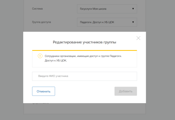 | Группа доступа | Педагоги. Доступ к УБ ЦОК |